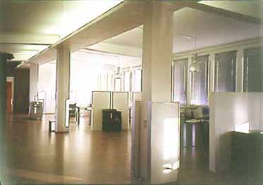 Büro Loft Konzept und Innenarchitektur für eine Werbeagentur Eine 350 qm große Fabriketage sollte den zwei Chefs und 14 Mitarbeitern einer Werbeagentur Raum für einen kreativen Arbeitsplatz bieten. Die Besonderheit der Fabriketage sollte erhalten und ein innovativer Charakter entwickelt werden. Durch eine Art Schleuse gelangt nun der Kunde in die Räumlichkeiten und wird durch die inszenierte Enge auf die Weitläufigkeit der Etage vorbereitet. Die Arbeitsplätze der Mitarbeiter sind lediglich durch halbhohe Trennelemente voneinander abgegrenzt und zerstören somit nicht den einheitlichen Charakter des Raumes. Funktionstechnisch zu isolierende Räume wurden größtenteils in den hinteren Bereich verlegt und durch große Glasbänder optisch wieder mit dem Großraum verbunden. Kosten. 100.000.- Euro Nutzfläche. 350 qm Fertigstellung. 2/2003 Ort. Nürnberg, Deutschland |